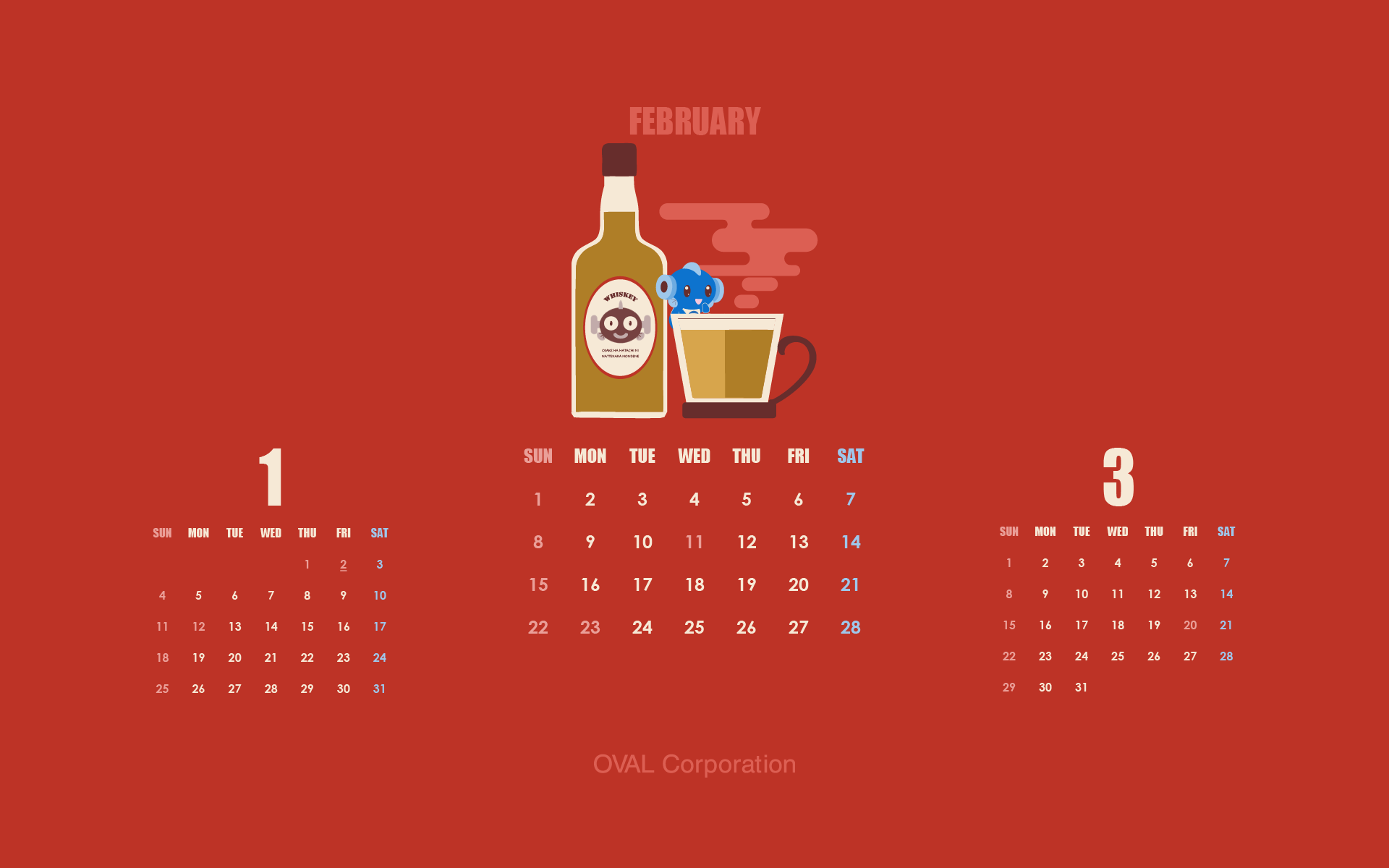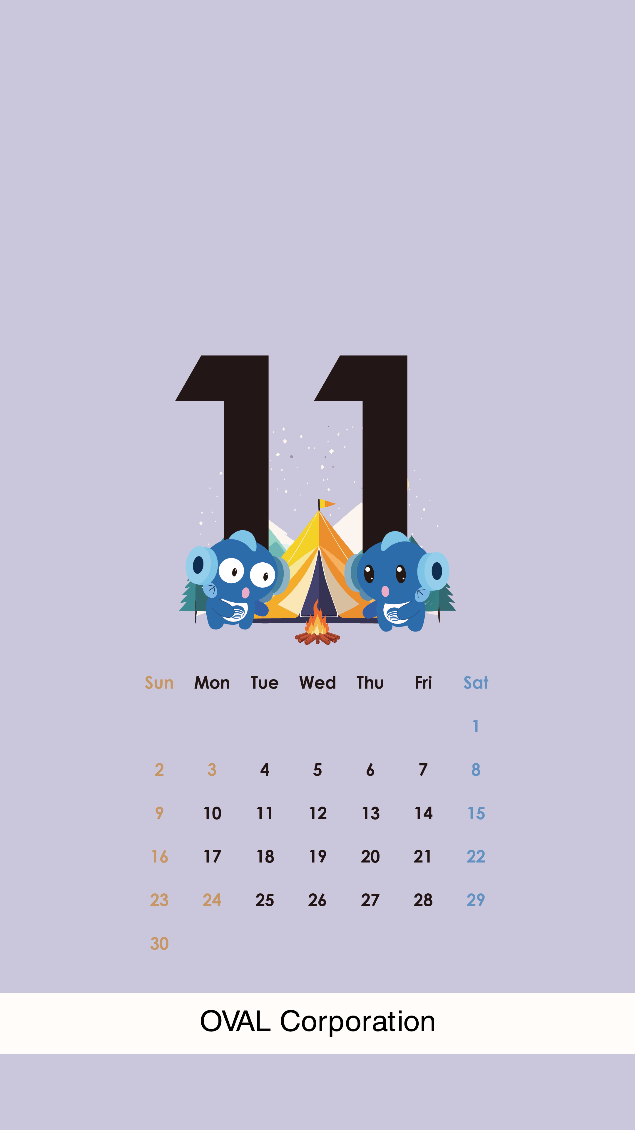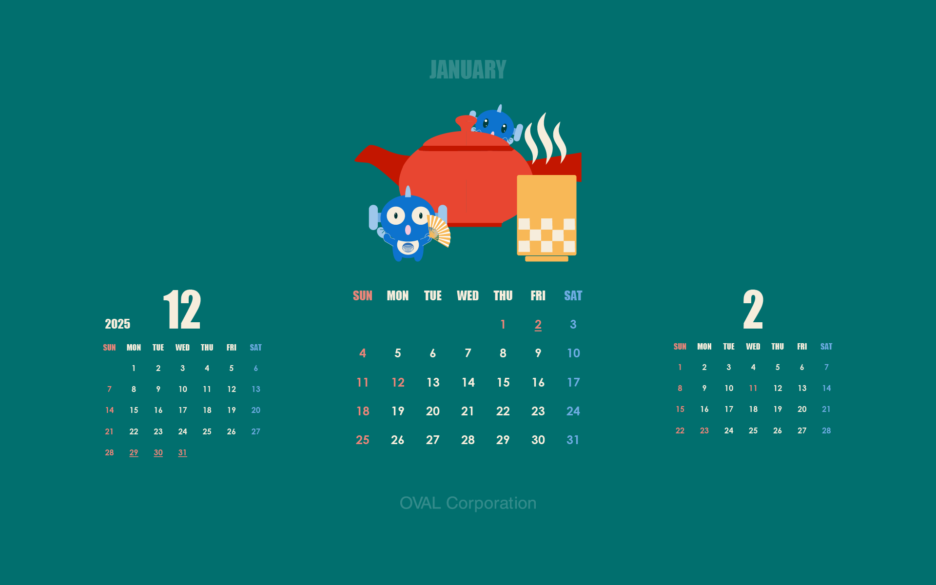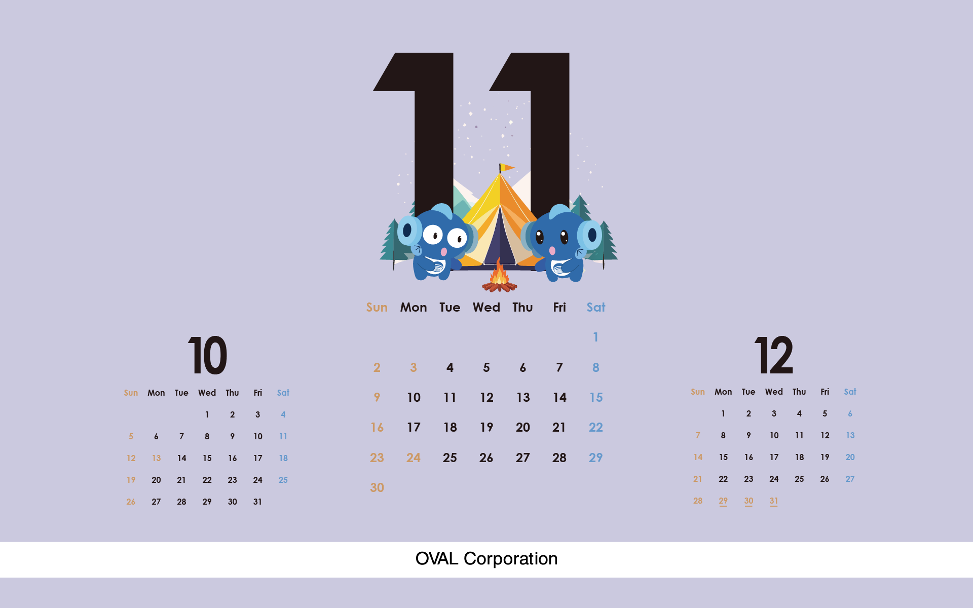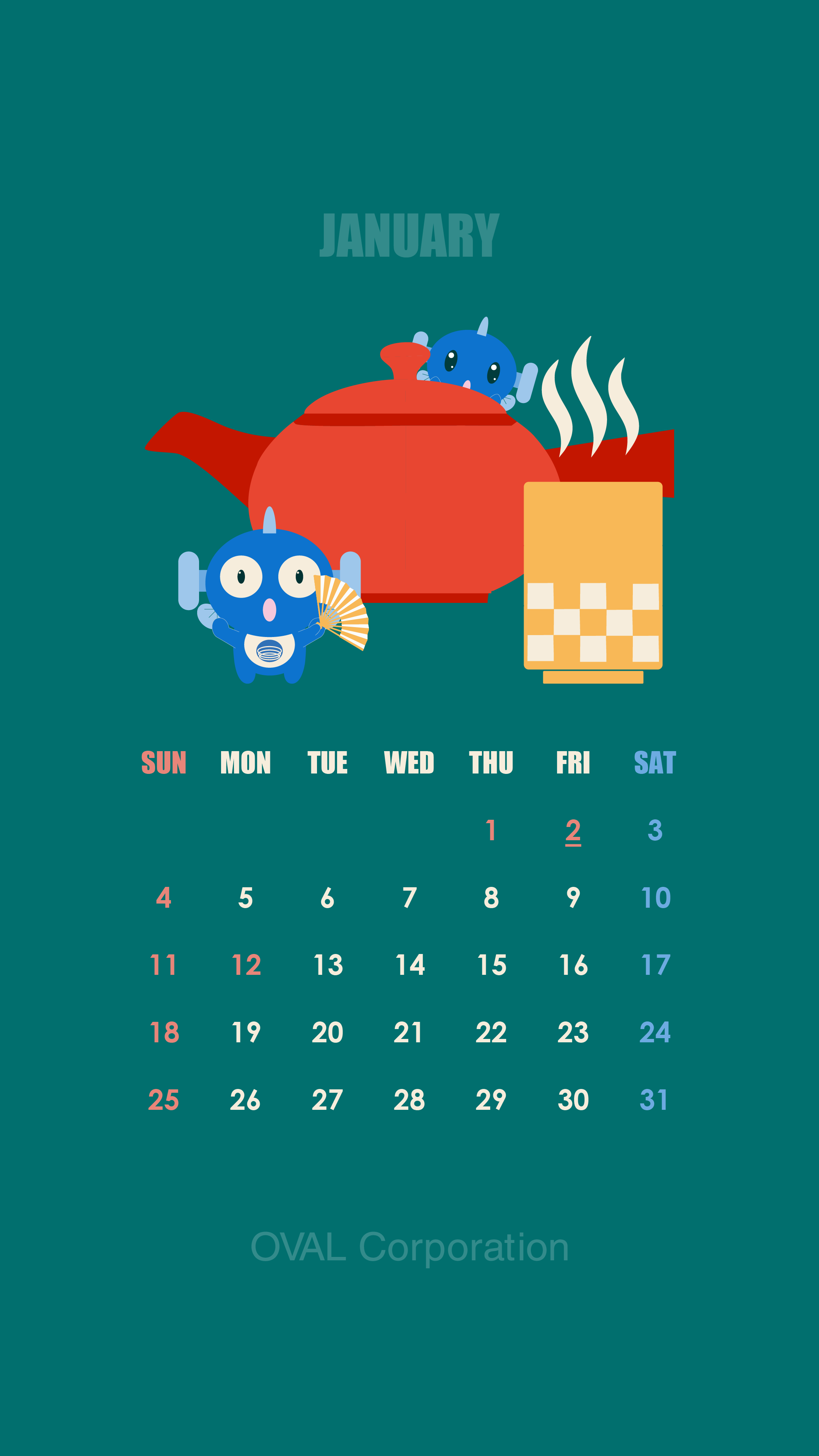 オーバルのマスコットキャラクターである「おーちゃん」、「ばるちゃん」が登場するオーバルオリジナル壁紙カレンダーをご用意しました。