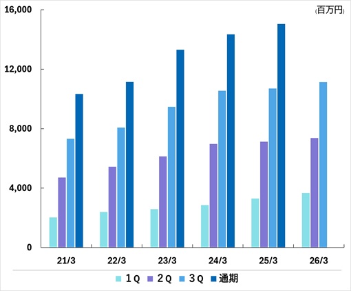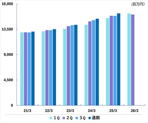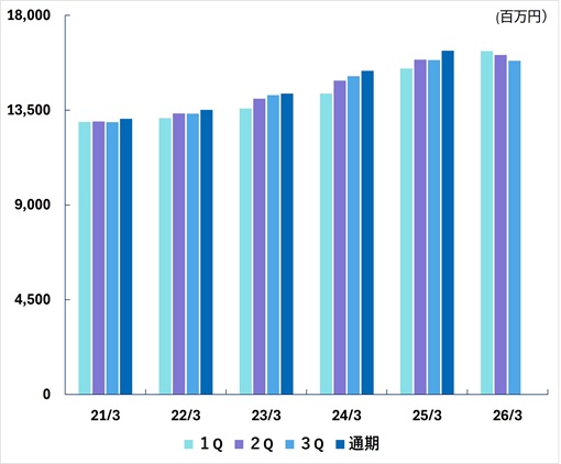 | 通期 | 13,084 | 13,514 | 14,282 | 15,364 | 16,320 | |