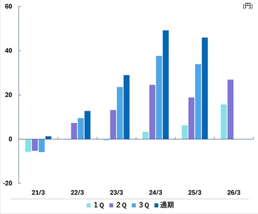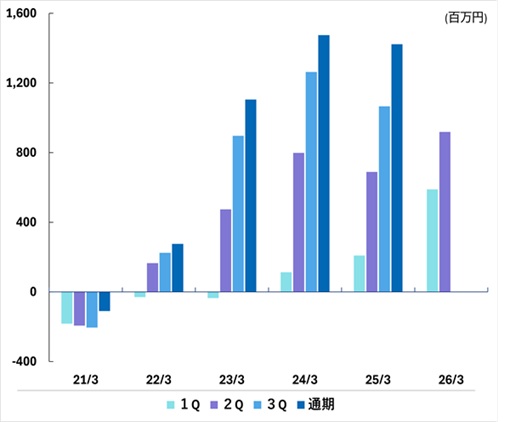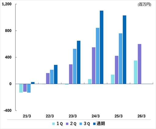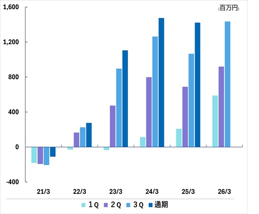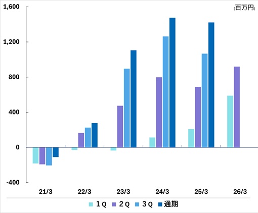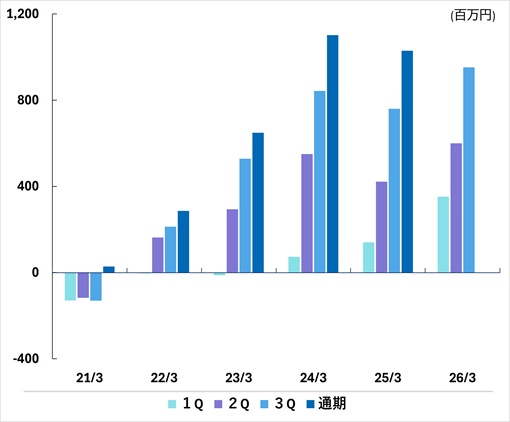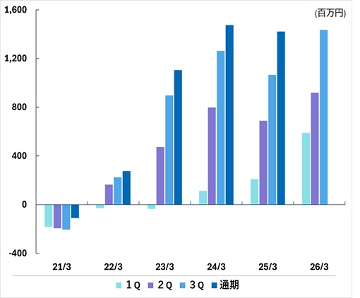 | 通期 | -110 | 276 | 1,105 | 1,475 | 1,422 | |