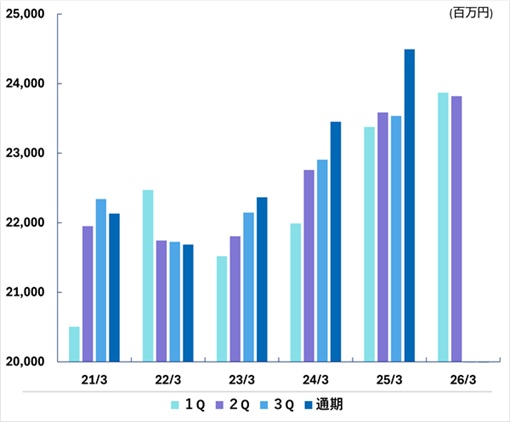 | 通期 | 22,131 | 21,685 | 22,365 | 23,451 | 24,493 | |