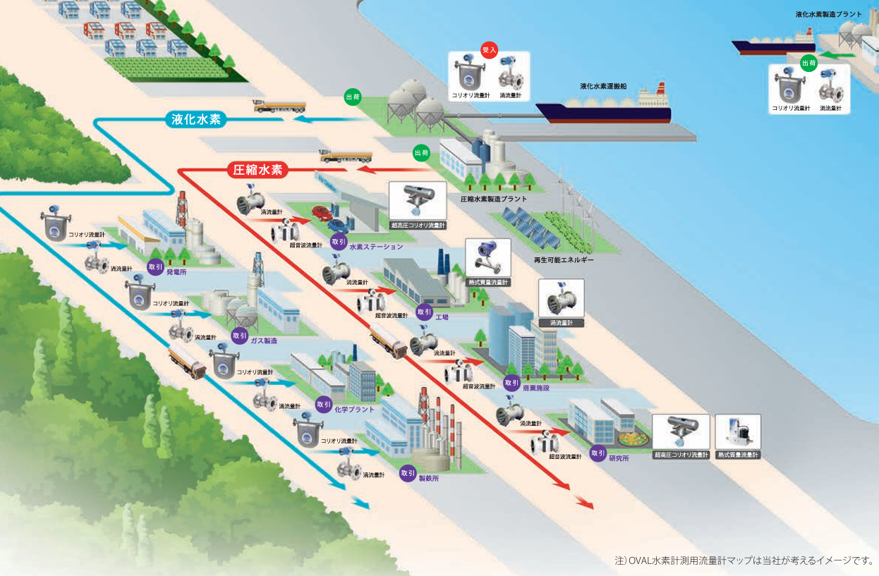 オーバルは流量計測専門メーカーとして水素サプライチェーンの流量計測と校正までをワンストップショッピングで対応します。