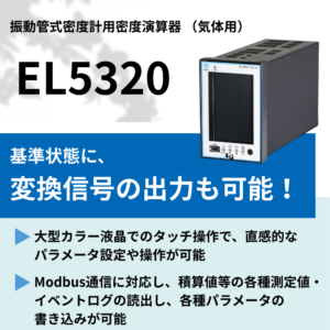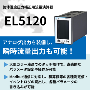 JIS M8010に基づいた補正の他、温度・圧力の2次関数としての補正計数Xを使用することも可能で、自由度の高い補正演算を有します。また、アナログ出力を装備し、