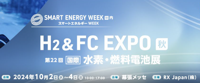 2024年10月2日(水)から開催されます「H₂ & FC EXPO [秋] 第22回 国際 水素・燃料電池展」に次の通り 出展いたします。皆様のご来場をお待ちしております。