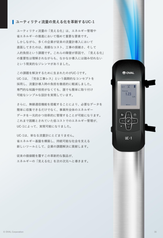 本稿では、なぜ「流体計測」の導入が難しいとされているのか、その背景や課題を整理するとともに、これらの課題を解決し、ユーティリティ流体使用量の可視化を実現する「液体用電池駆動式クランプオン形超音波流量計UC-1」をご紹介します。